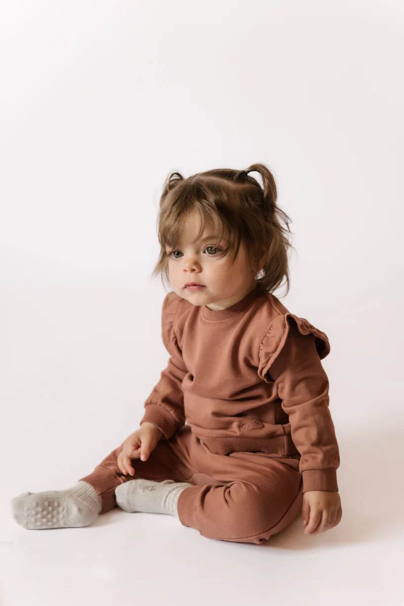 - Clay: French Terry Ruffle Sweatshirt & French Terry Harem Pant